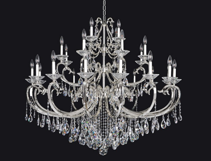 2.15 Light Chandelier. The Steffani Collection showcases grandeur with sweeping curves in Chrome or 24k Gold, Clear Firenze bobeches, and Swarovski or Firenze crystals for opulent sparkle.