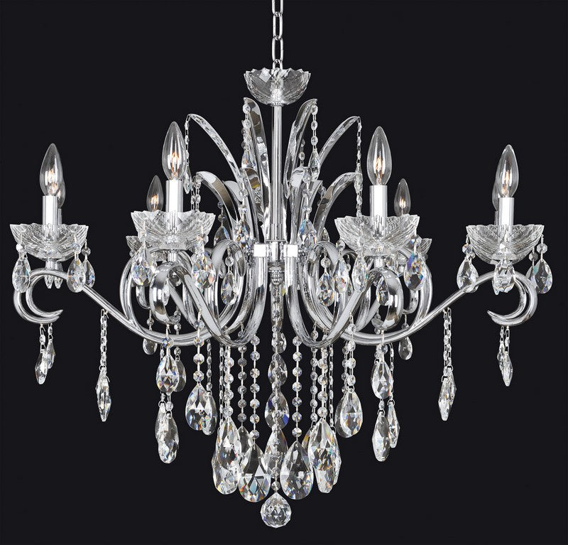 2.18 Light Chandelier. The Faure Collection elevates tradition with curves in Two-tone Gold or Aged Bronze, Clear and Smoke Fleet Argentine bobeches, and Swarovski or Firenze crystals.