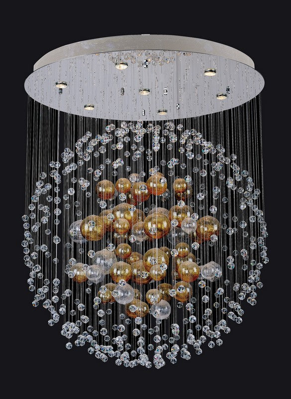 2.5 Light Chandelier. Fanshawe layers hand-blown glass arms with conical glass columns and Clear Firenze crystals. Chrome finish disappears, letting crystal take focus.