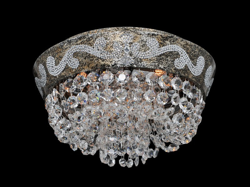 2.5 Light Chandelier. The Campra Collection combines Silver curves with a Clear Firenze teardrop stem, Clear and Smoke Fleet Argentine bobeches, and Swarovski or Firenze crystals.