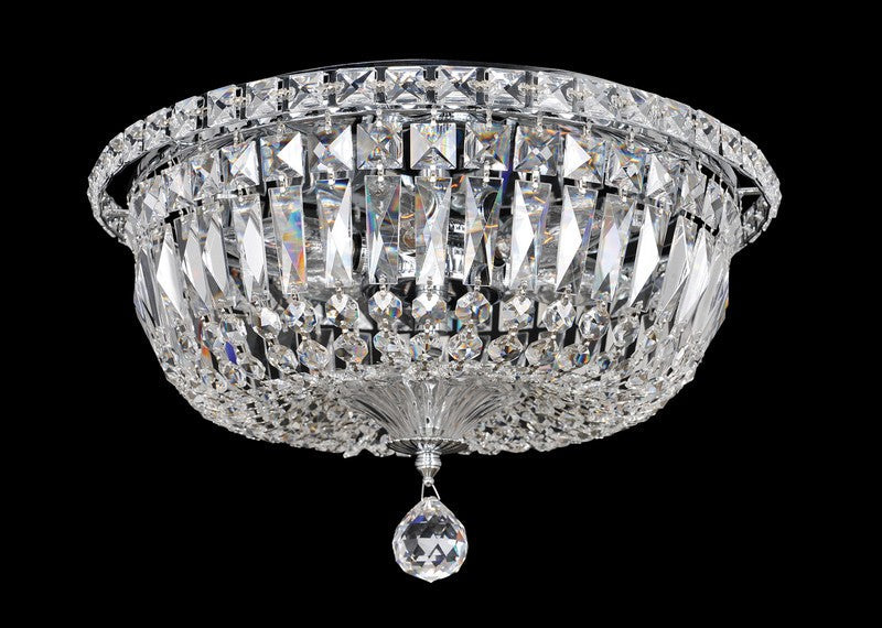 2.6-Light Chandelier from the Rafael Collection. A modern take on majestic design, with cast-brass arms in Antique Silver or Two-Tone Gold, half-brass and half-Clear Firenze crystal bobeches, and Clear Firenze or Swarovski crystals for timeless elegance.