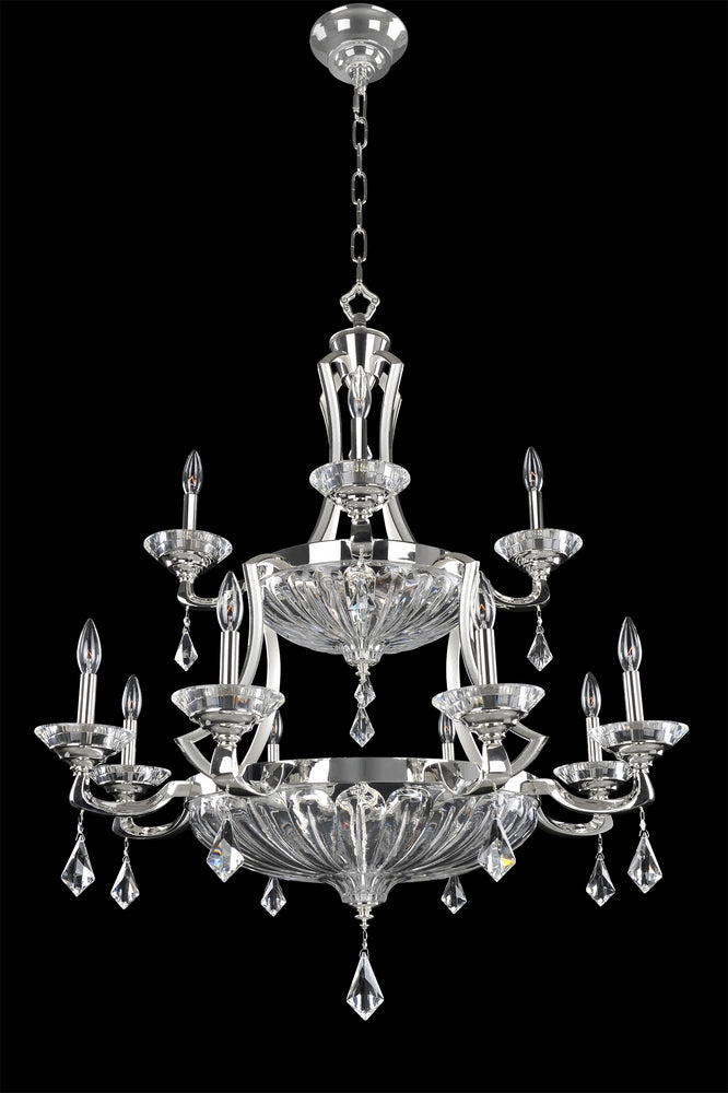 2.6 Light Chandelier. The BizetCollection is a modern interpretation of traditional drum shades. Crystals are suspended throughout the laser-cut lacework of these metal drum shades adding a touch of glamour to these sophisticated shades.