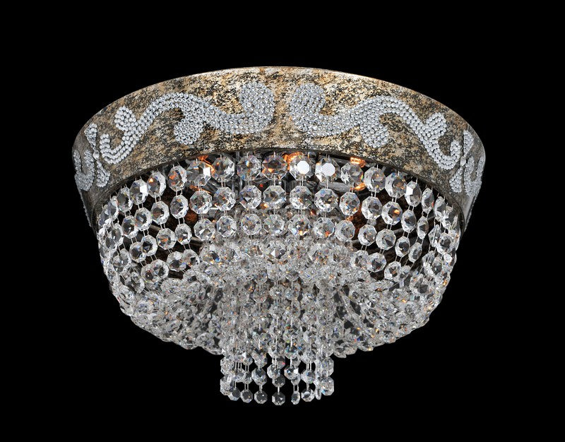 2.6 Light Chandelier. The Campra Collection pairs Silver curves with a Clear Firenze teardrop stem, Clear and Smoke Fleet Argentine bobeches, and Swarovski or Firenze crystals.