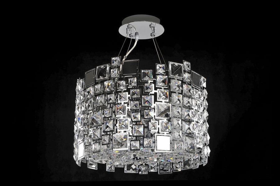 2.8 Light Chandelier. The BizetCollection is a modern interpretation of traditional drum shades. Crystals are suspended throughout the laser-cut lacework of these metal drum shades adding a touch of glamour to these sophisticated shades.