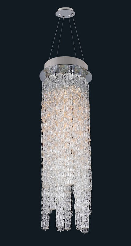 24 in. Convertible Round Pendant/Flush Mount – The Auletta Collection, inspired by Art Deco theater foyers, features layered Prism crystals on a Chrome frame for a sleek, dramatic look.