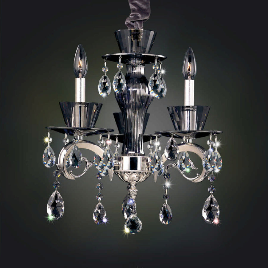 3.48 Light Chandelier. The Legrenzi Collection fuses modern design with traditional elegance, featuring ornate stems, curves in Antique Silver Leaf or Two-tone 24k Gold, Clear Firenze bobeches, and draped crystals for glamorous sparkle.