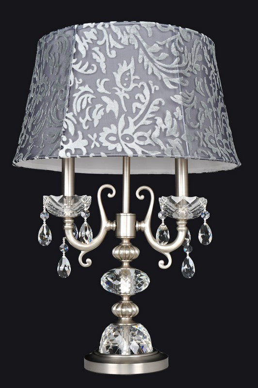 4.6 Light Table Lamp. The Haydn Collection merges modern style with traditional acanthus leaves. An ornate stem and elegant curves in Aged Bronze or Antique Brass are crowned with Clear Firenze bobeches, while dangling crystals add sparkle and glamour.