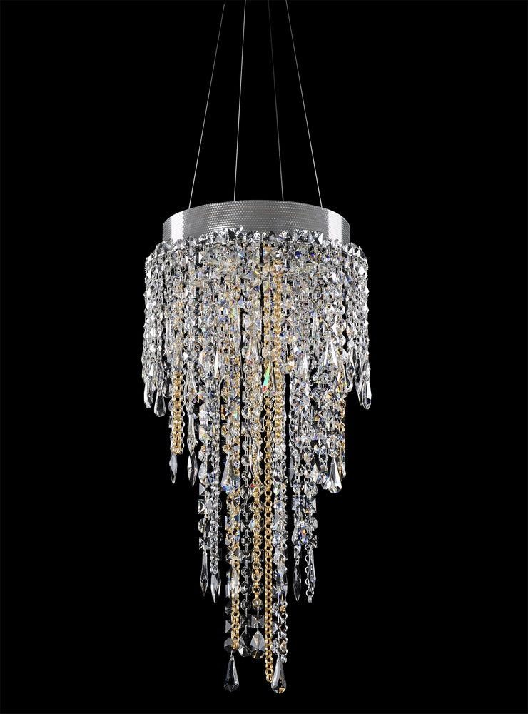 5 Light Flush Mount. Modern meets traditional with Firenze crystal orbs, hand-blown glass curves, and bobeches. Dangling crystals sparkle as the Chrome finish fades away.
