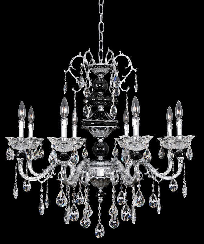 9 Light Chandelier. The Cassella Collection blends modern and traditional elegance with a Clear Firenze crystal carafe column, graceful curves in Allegri finishes, Clear and Smoke Fleet Argentine bobeches, and draped Firenze crystals for radiant sparkle.