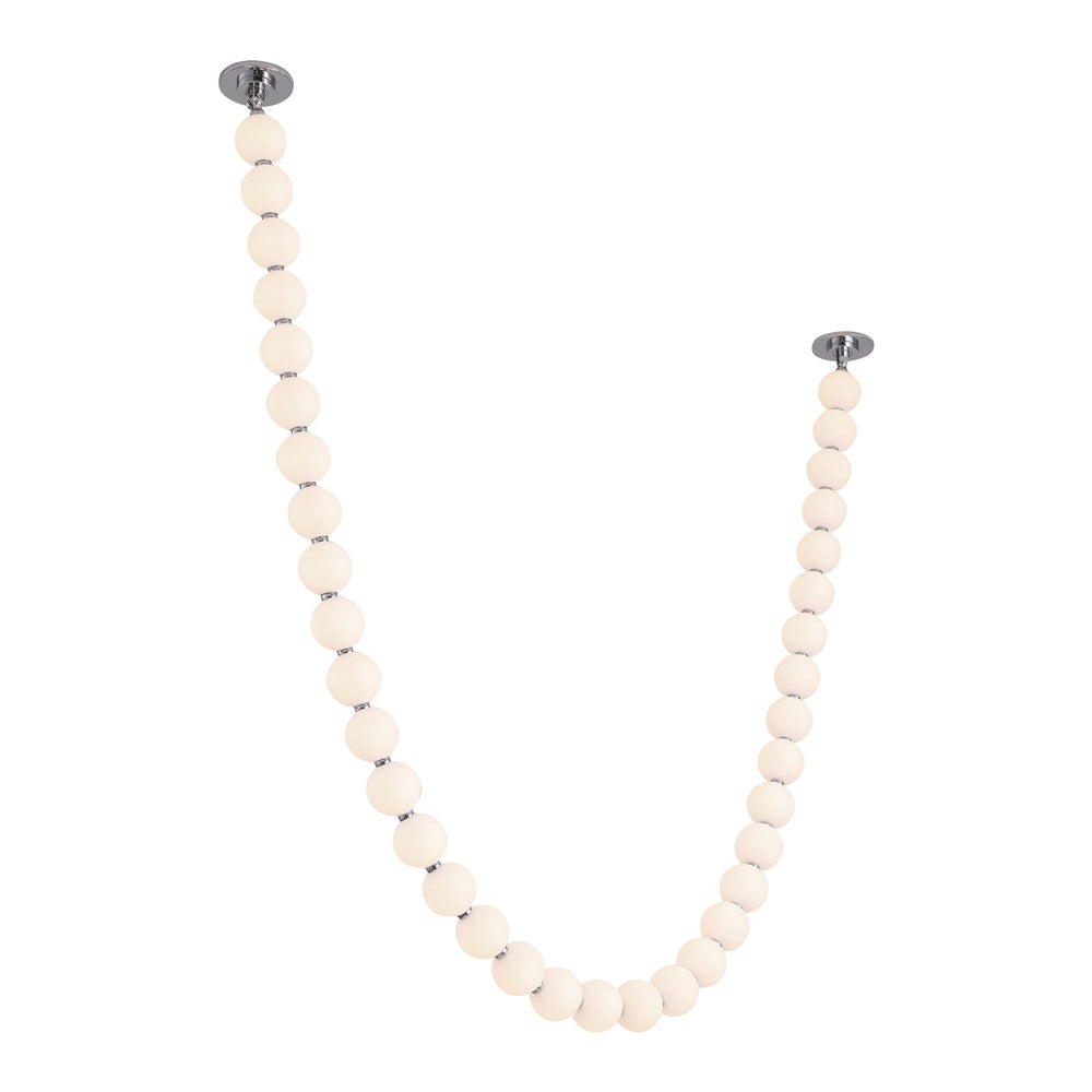 Inspired by the luxe pearls discovered by the sea, the Akoya collection is an instant classic. With unlimited amounts of configurations, this collection is perfect for any space in need of an awe-inspiring statement piece. Beads of illumination twirl in any way you prefer on a subtle frosted polished chrome frame. Now available in new sizes and canopy options.