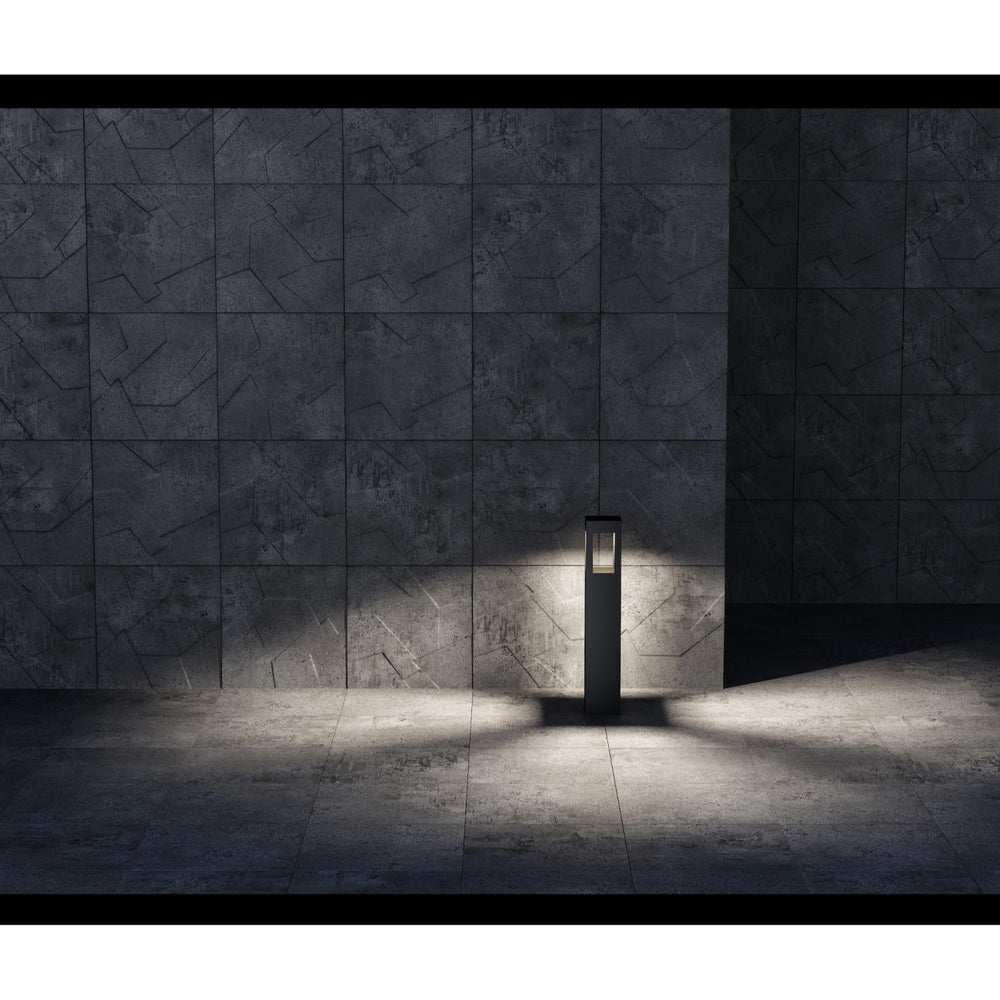 Architectural designed high powered LED exterior bollard fixture, high pressure die-cast aluminum square-shaped housing with four rectangular-shaped openings which radiates the light downward and throughout all openings and surrounding areas of the bollard. Available in two different heights and IK10 Rated.