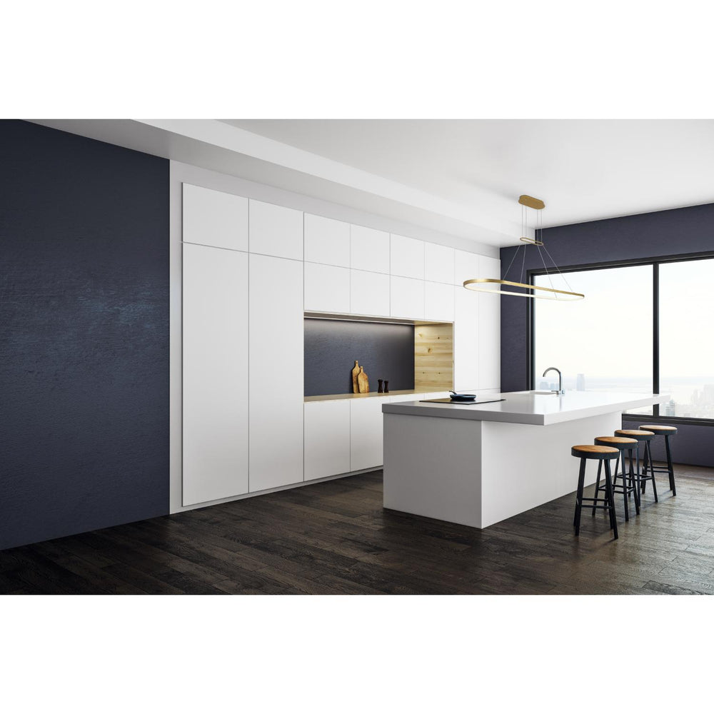 Extruded rectangular aluminum rolled into stadium shape. Matte powder-coat or plated brushed finish. Flexible silicon opal diffuser. Up and down light. Custom options available.