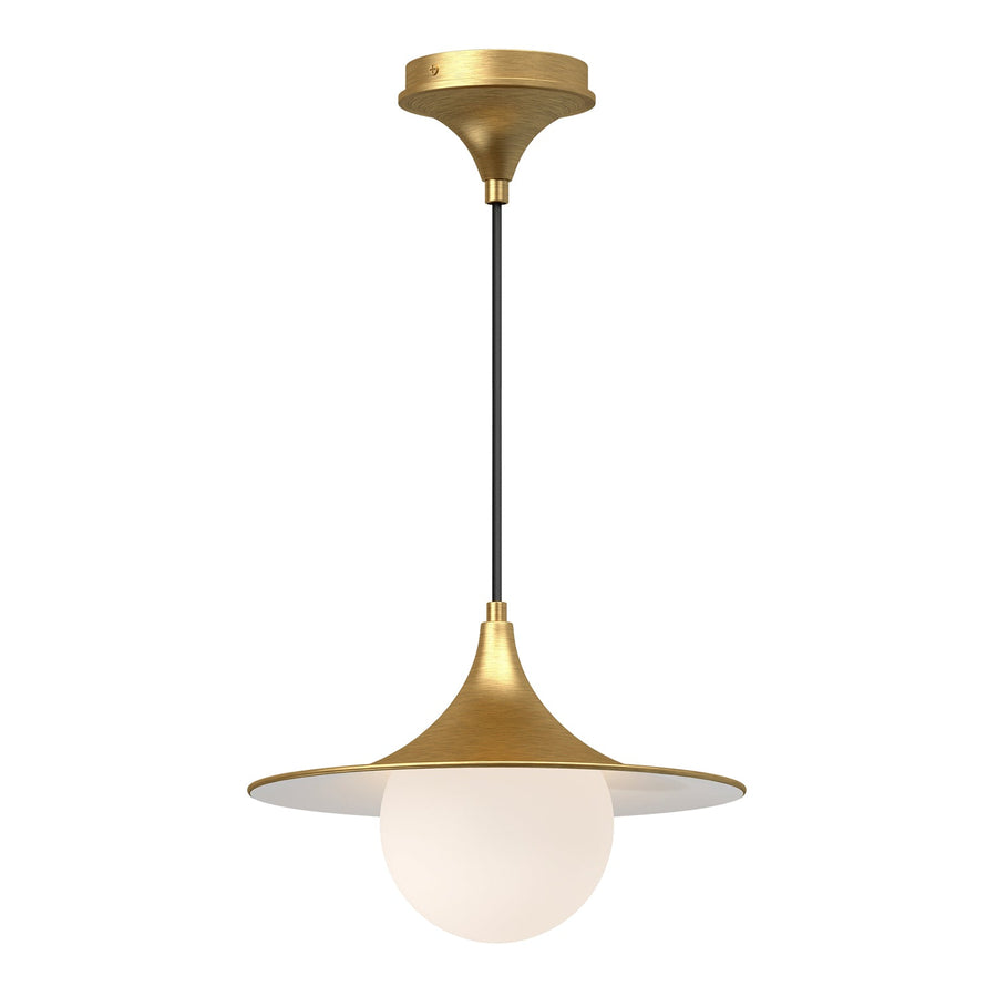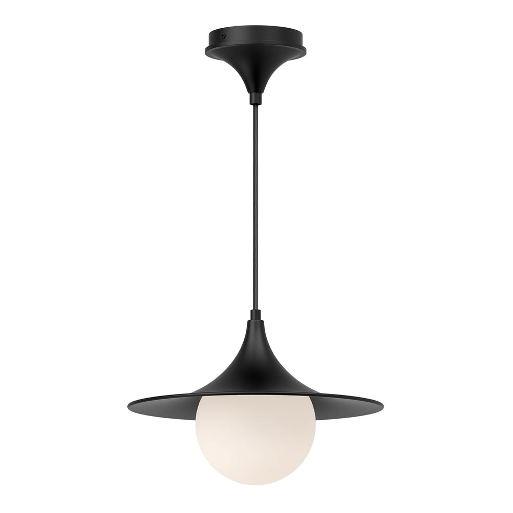and organic triangle shade. Adorned with a decorative globe of opal glass and finished in either