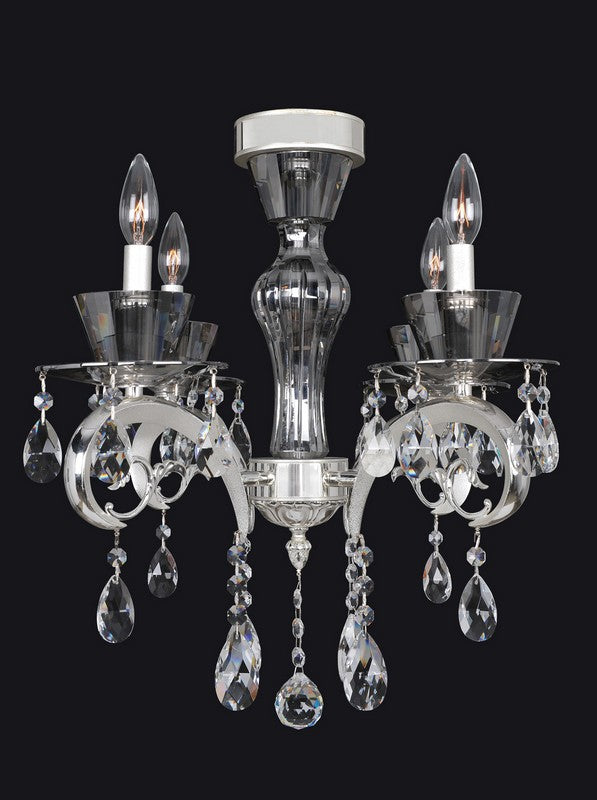 2.4 Light Chandelier. The Georgetta Collection features inverted fleurs-di-lis forming a heart-shape. Laser-cut shades with Black Organza, Aged Silver finish, wood bobeches, and Swarovski or Firenze Fleet Gold crystals for a romantic touch.-1