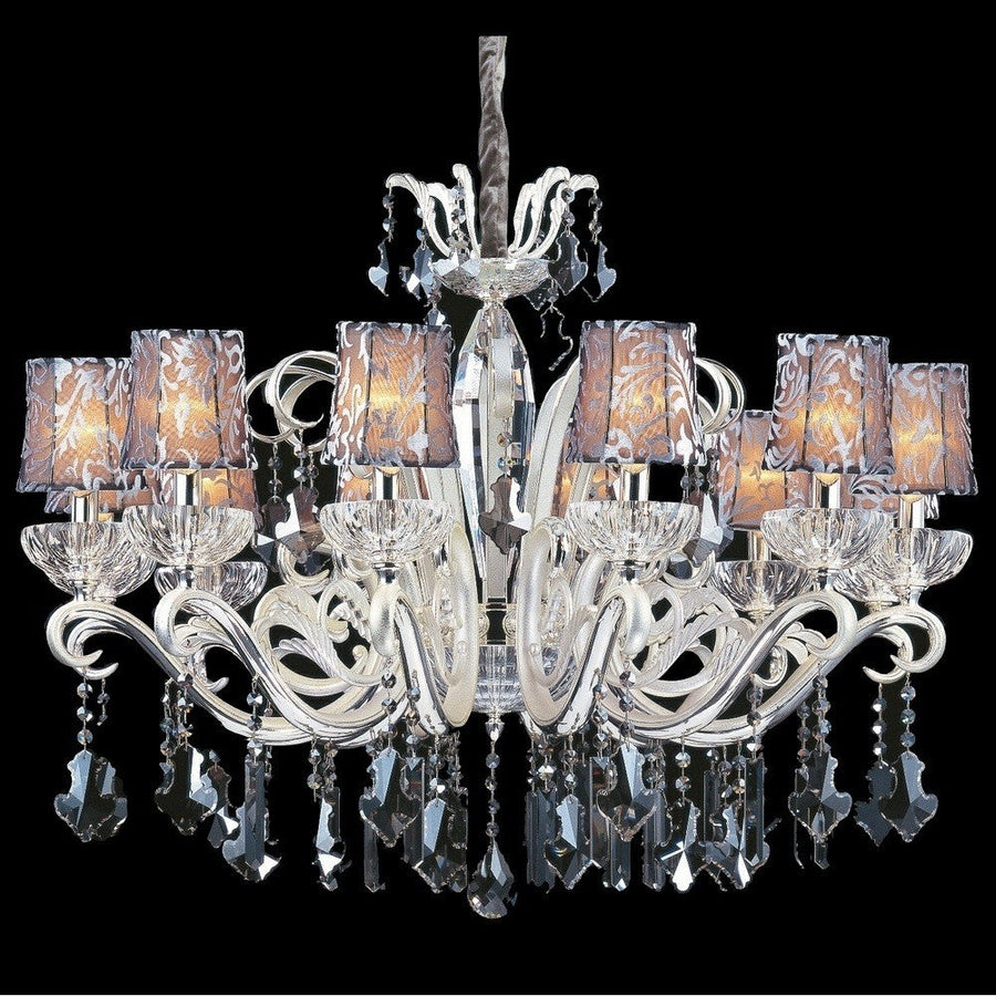 1.8 Light Chandelier. The BizetCollection is a modern interpretation of traditional drum shades. Crystals are suspended throughout the laser-cut lacework of these metal drum shades adding a touch of glamour to these sophisticated shades.